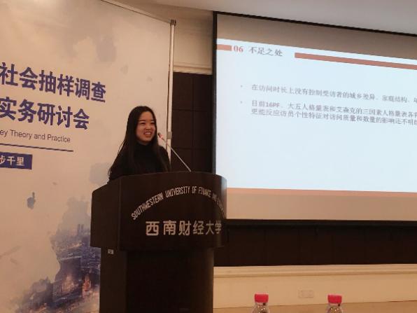 2018年12月6日,中心团队CFPS调查主管孙妍老师及项目组成员管亚男,CHARLS项目组成员贾媛,执行及质控部阴晴、魏晓雯、仇新晨、张雅欣,技术部孙帅、刘昊,数据部石田依一行十人受邀前往西南财经大学参加“第二届社会抽样调查理论与实务研讨会”。